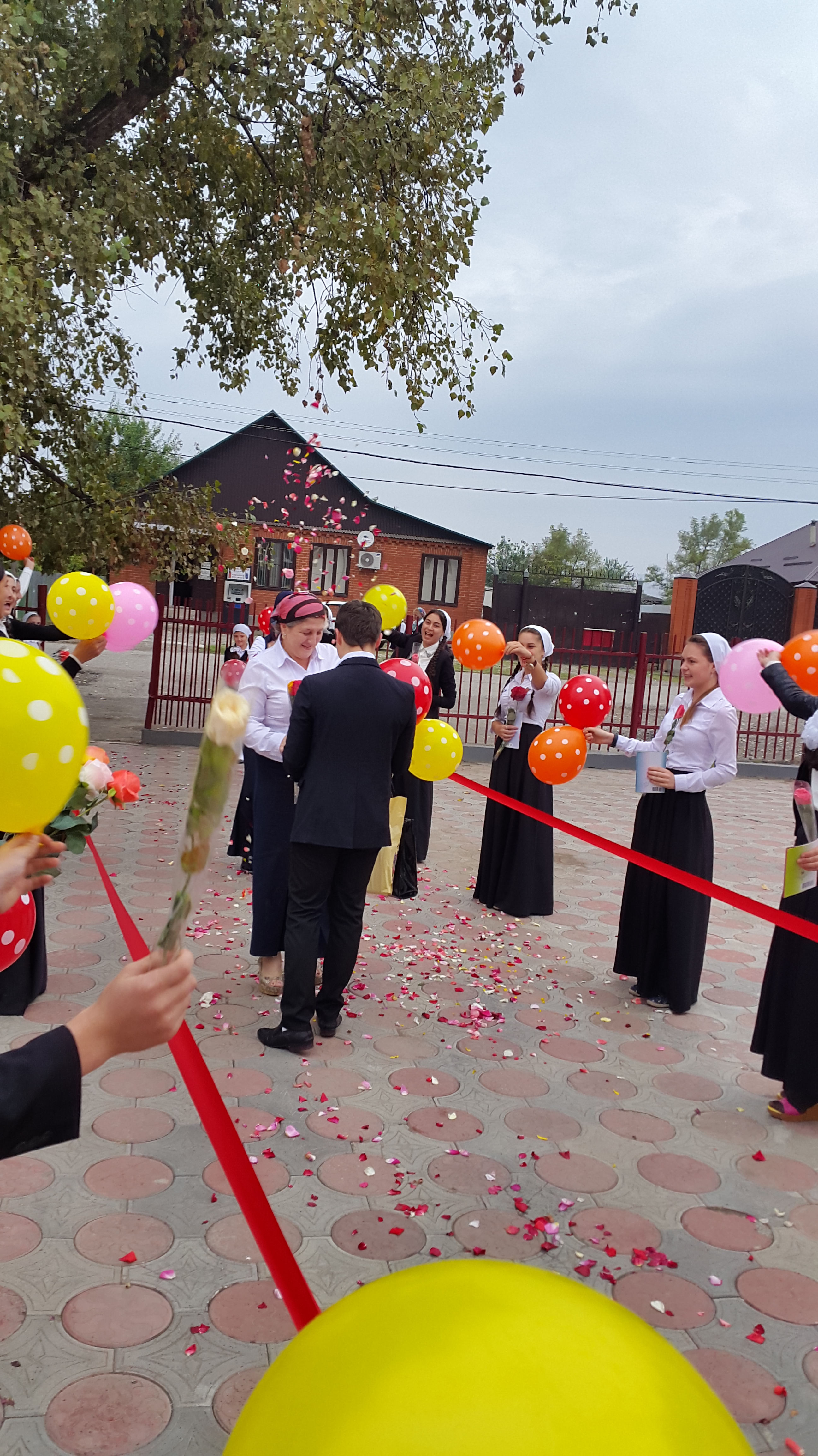 05.10.20155 октября 2015 года учащиеся 11 класса подарили своим учителям подарок-сюрприз. Придя рано утром в школу, они усыпали розовыми лепестками дорожку от калитки и до второго этажа и дарили учителям букеты цветов.