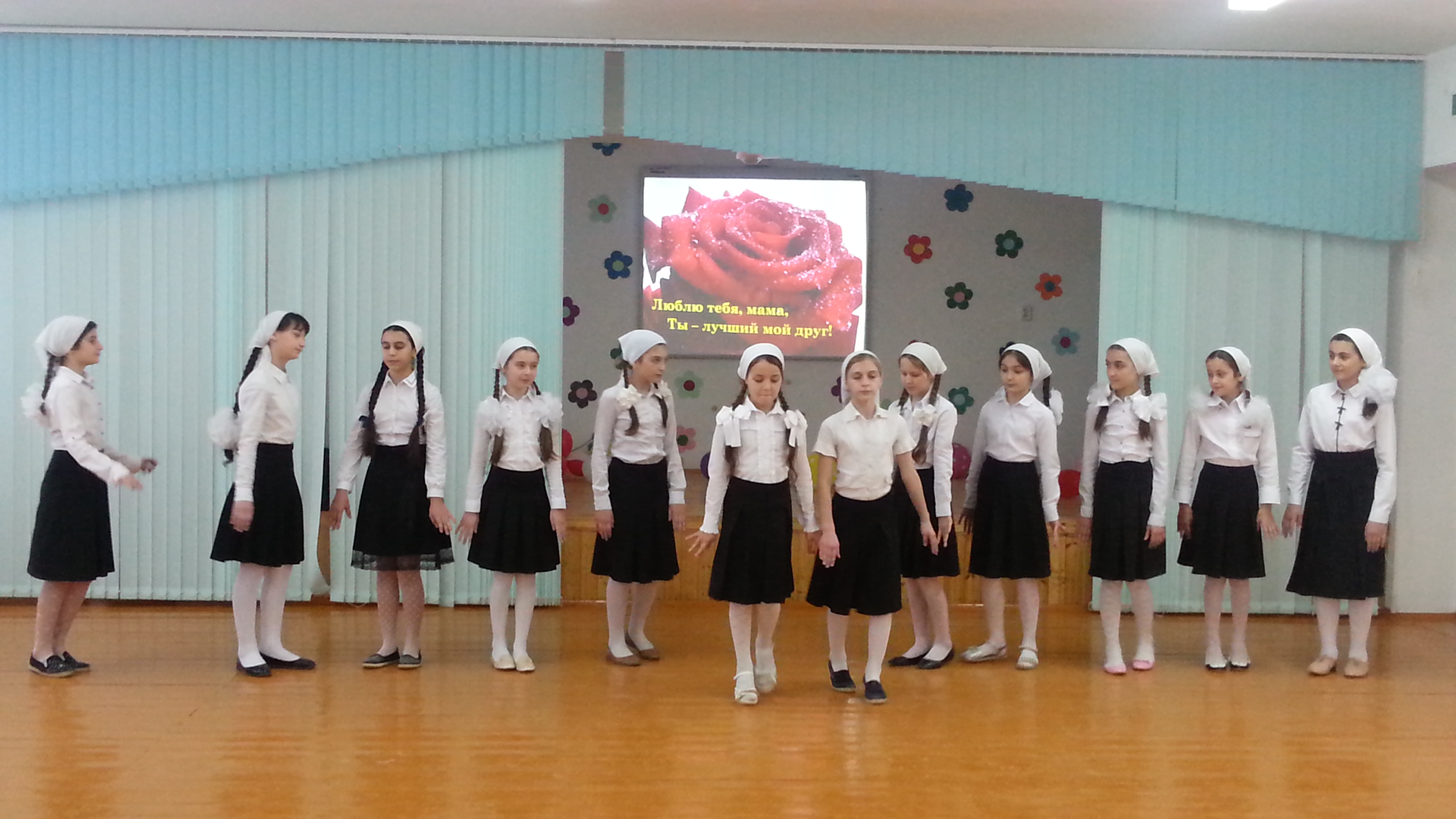 28.11.2015С 20 по 28 ноября в целях формирования нравственной культуры учащихся, воспитания бережного отношения, заботы и чувства ответственности, воспитания уважения и любви к матери, женщине, прививания уважения и любви к уникальным и богатым традициям и обычаям вайнахов, согласно разработанному плану, в школе проведен ряд следующих мероприятий: