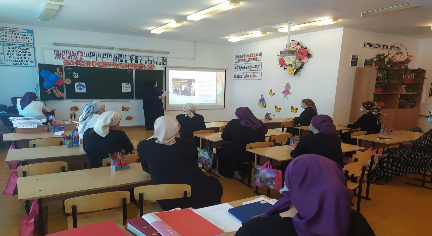 22 сентября учителем ОБЖ, Зулаевой А.М., проведен инструктаж с учителями начальных классов по теме «Перевозка детей в автобусах».