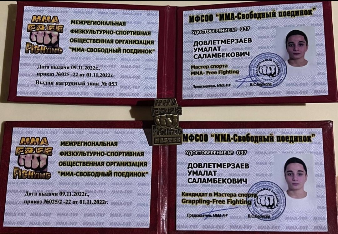 Довлетмерзаев Умалат- Мастер спорта по ММА "Free-Fighting" и Кандидат Мастера Спорта по Grappling "Free-Fighting"