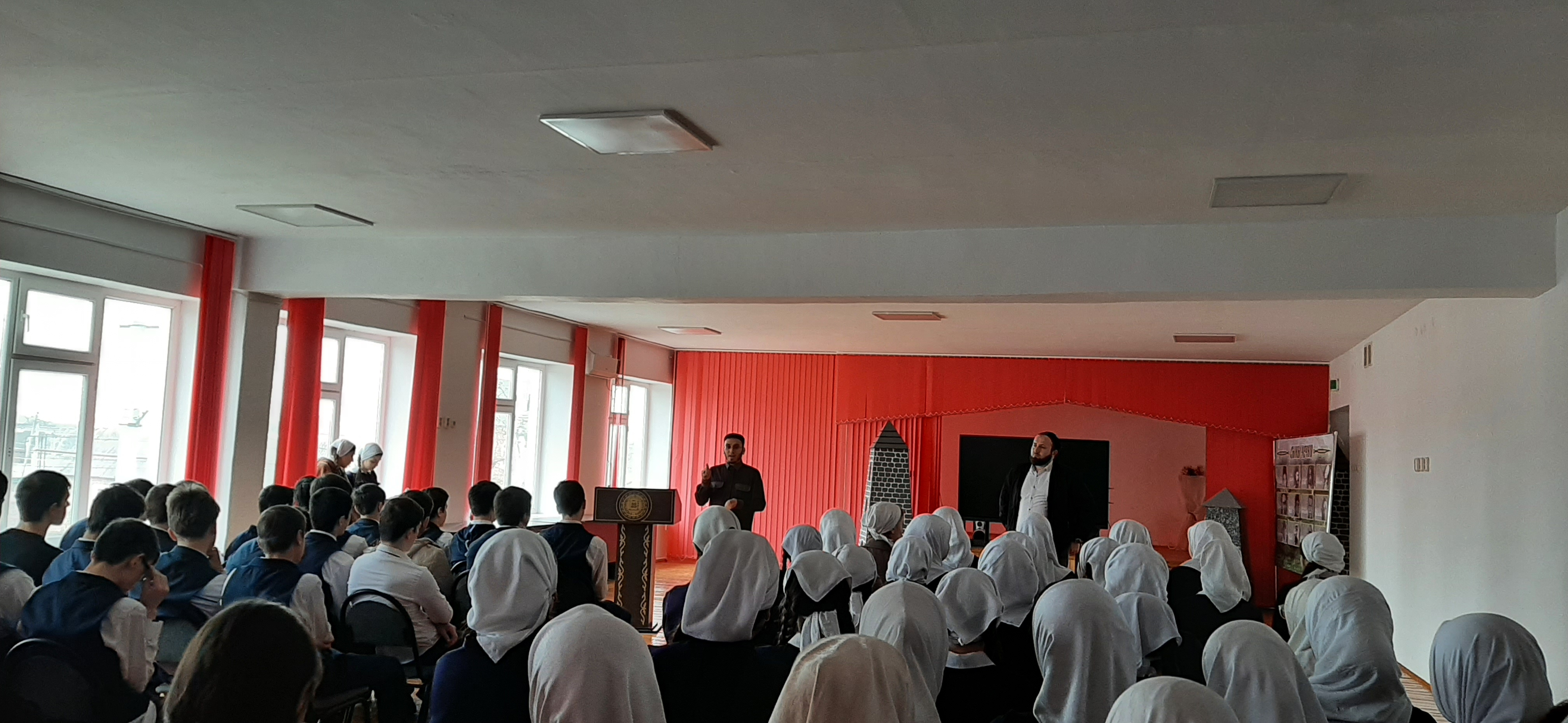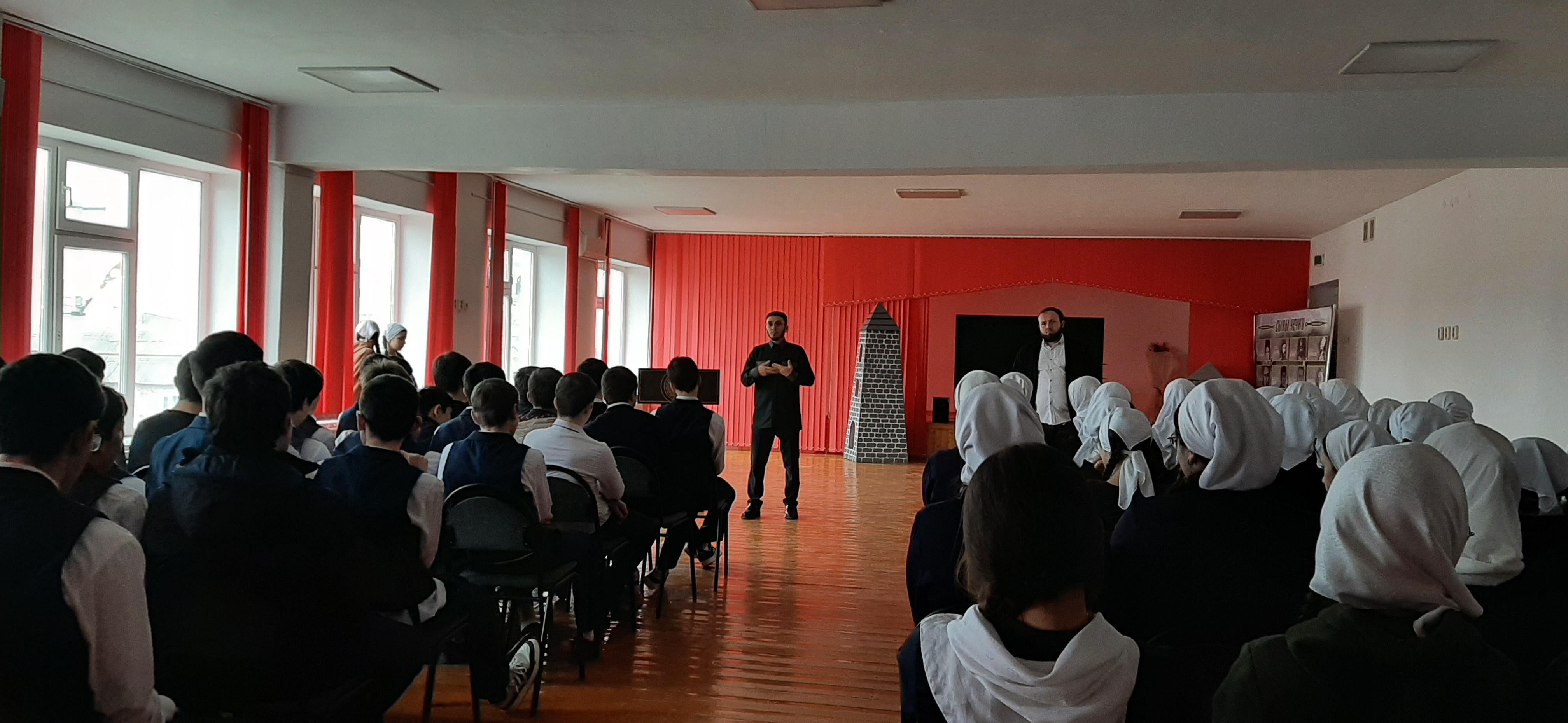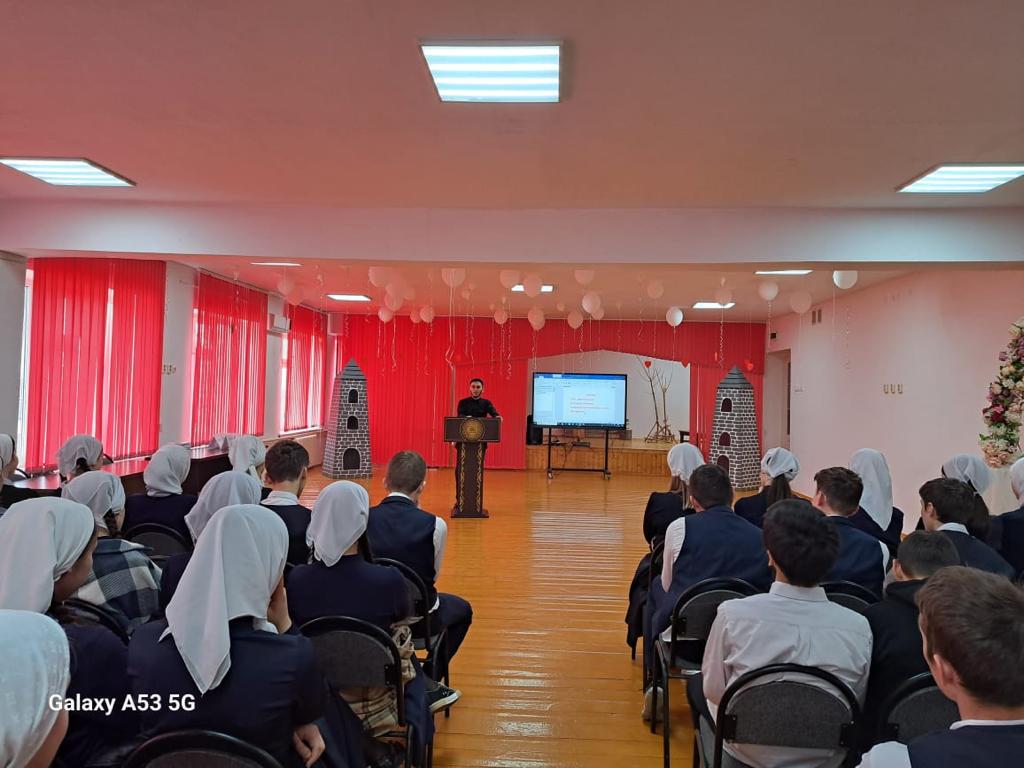 В актовом зале нашей школы педагогом по ДНВ Оттаевым М.А, была проведена беседа о принятии Конституции ЧР с учащимися 8-11 классов.В ходе Мовлади Альбекович рассказал учащимся о важности принятии конституции ЧР.