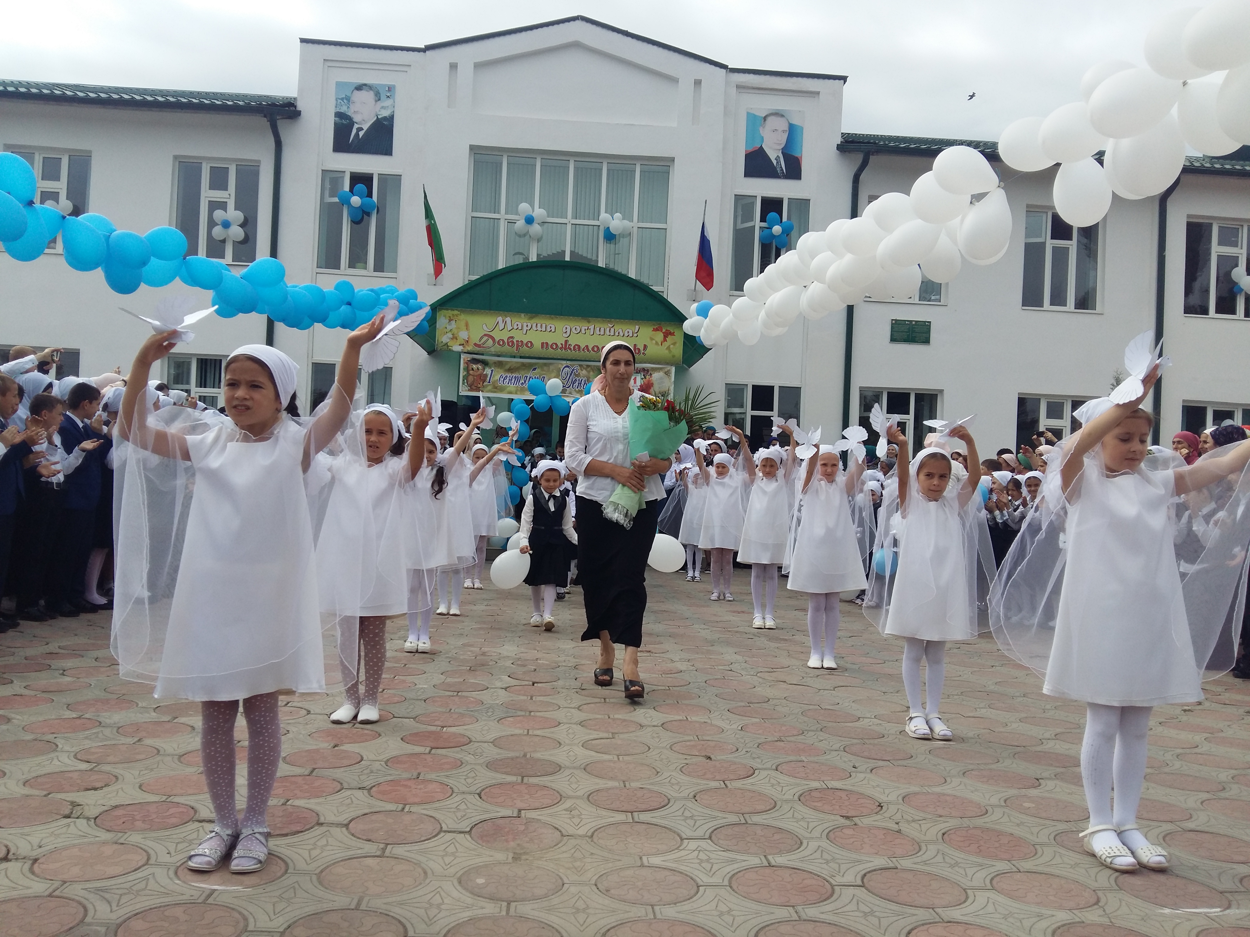 Право дать первый звонок предоставили ученику 11 «А» класса Умаханову Магомеду и ученице 1 «А» класса Межидовой Амине. После которого ученики под руководством классных руководителей отправились на свой первый урок!