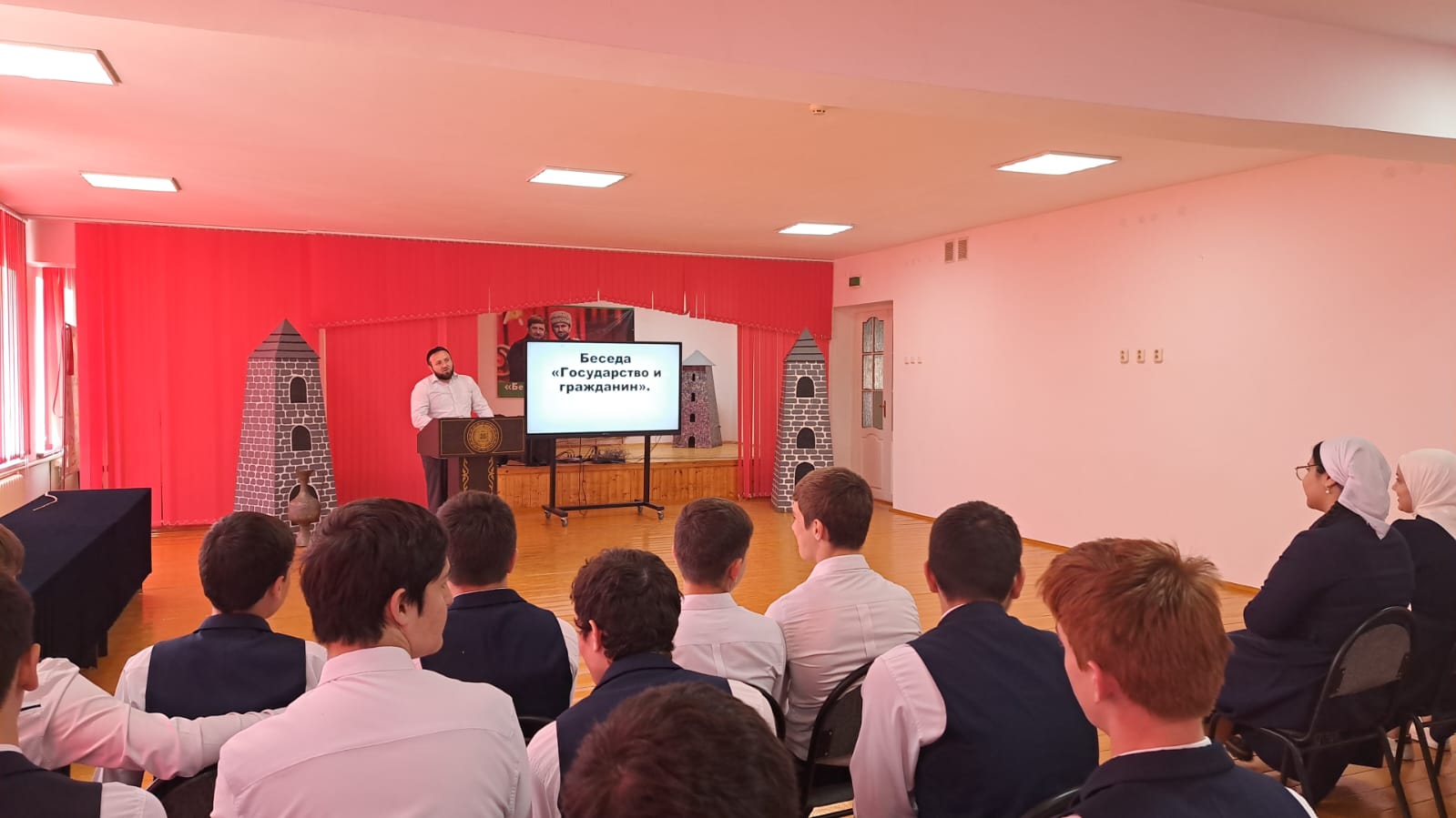 12.04.2024Советником директора по воспитанию и взаимодействию с детскими общественными объединениями Тепсаевым А.Р была проведена беседа на тему : "Государство и гражданин". В беседе Апти Русланович рассказал о правах человека, о взаимоотношениях государства и гражданина, об обязанностях государства перед гражданином и наоборот.