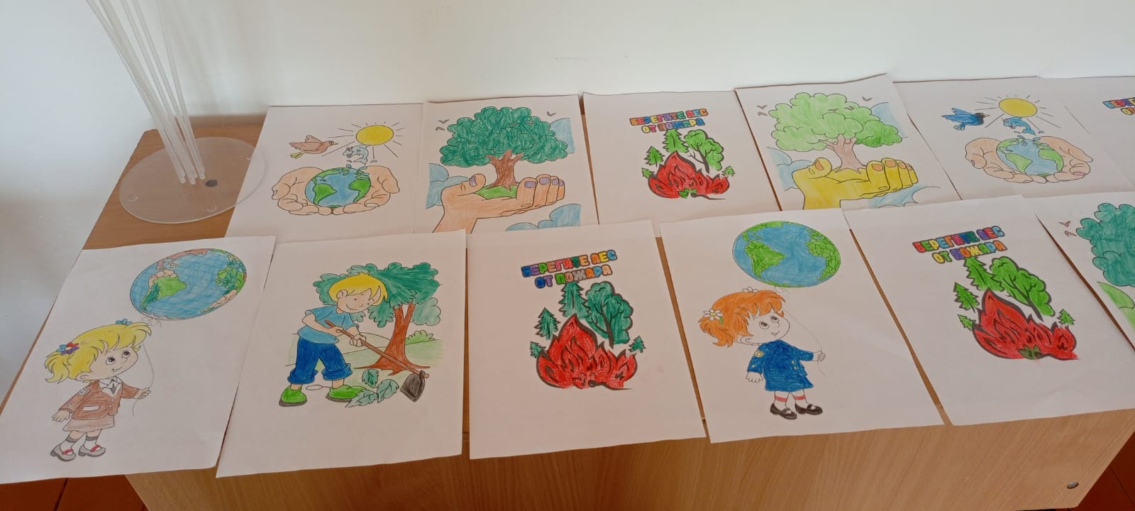 Басхановой Х.А. учителем начальных классов был проведён конкурс рисунков "Спасаем деревья с эколятами".