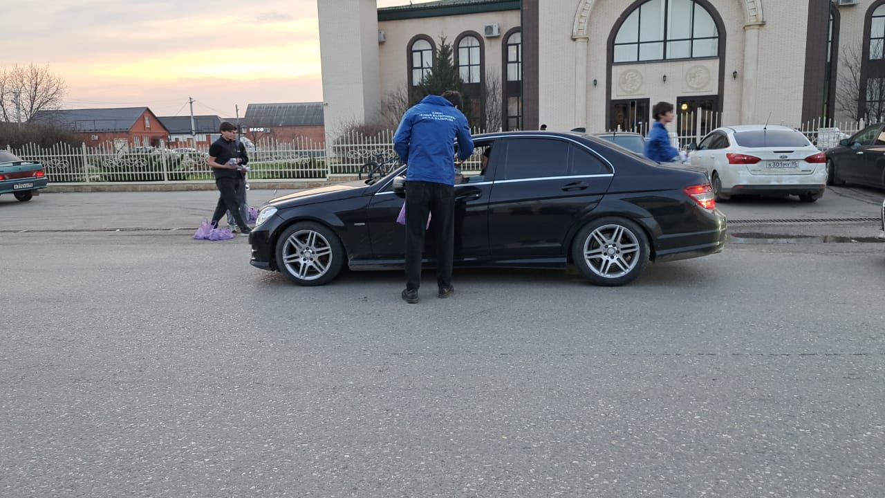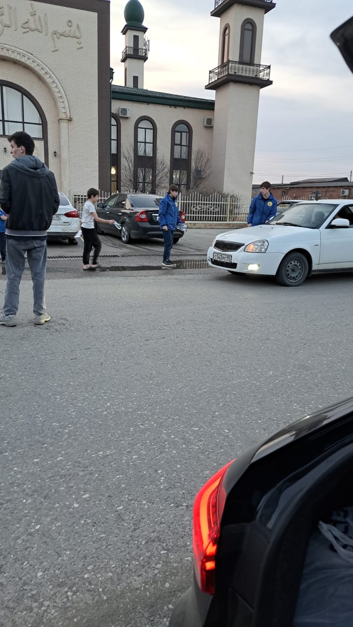 Такую благотворительность в центре села Самашки оказывают и активисты ЕДЮО "Юные Кадыровцы" МБОУ СОШ №4 с.Самашки". Они раздают бутылки с водой и финиками автомобилистам, которые застали время разговения в пути.