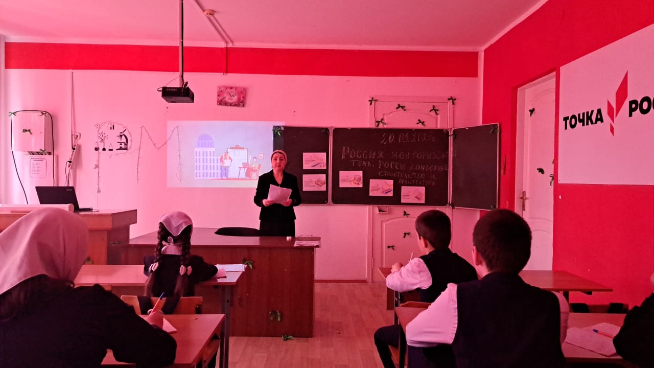 В нашей школе прошло очередное занятие курса внеурочной деятельности "Россия-мои горизонты". Учащихся ждал удивительный мир строительства и архитектуры. Тема сегодняшнего занятия — «Россия комфортная: строительство и архитектура».
