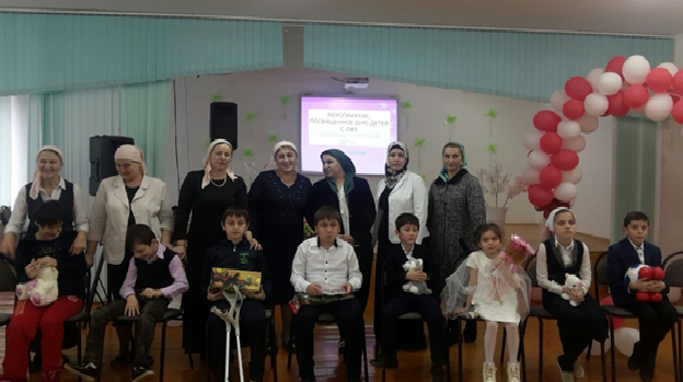 На мероприятие были приглашены дети обучающиеся на дому Далаев Хажи, Барщигова Раяна, Ибишев Микаил, Дадуев Магомед, Махаури Хадижа, Батаева Танзила,Басханов Рамзан. Это напоминание всем о необходимости внимания, милосердия, заботы и помощи детям. Не смотря на болезнь детей, они активно читали стихи, танцевали, и радовались мероприятию.Учащиеся школы подготовили концерт и сувениры для детей них.