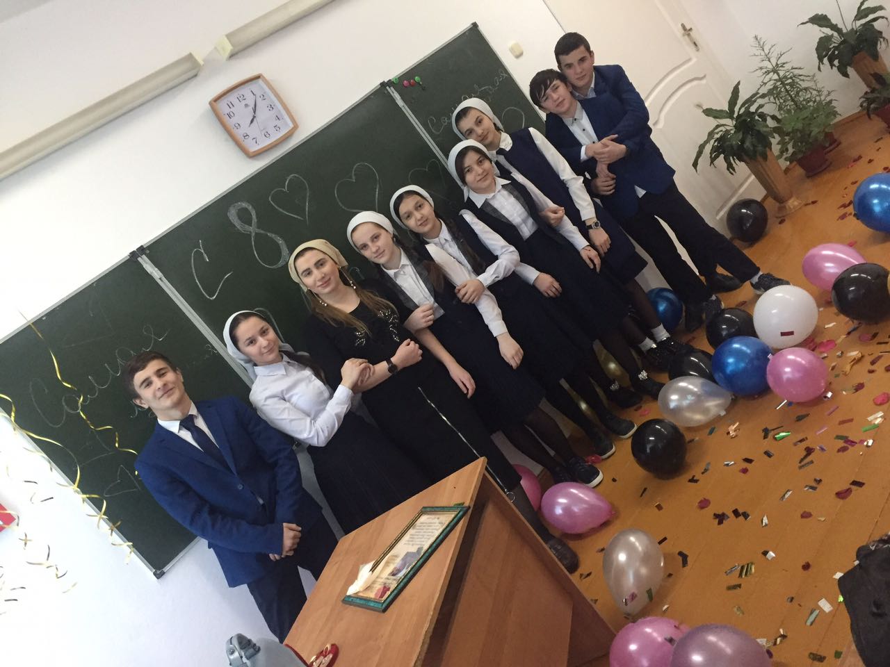 Мальчики 9 "И" класса поздравили своего классного руководителя, Лабазанову М.Ю. и одноклассниц с наступающим Международным женским днем 8 марта.