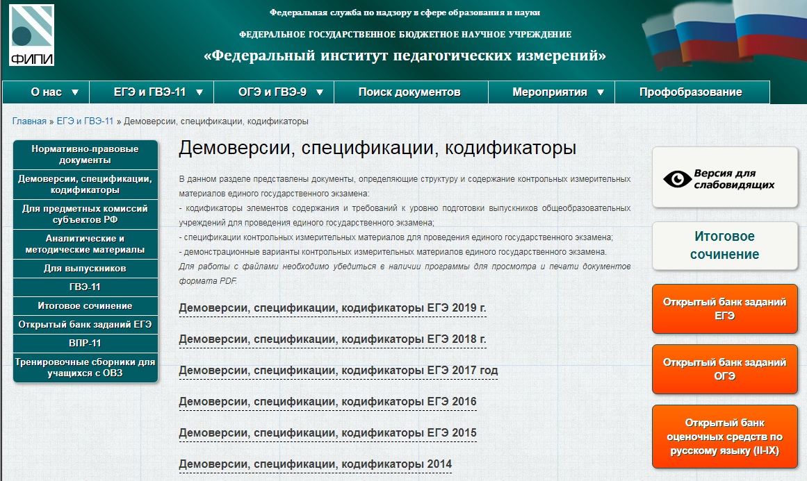Данные документы являются основой для составления экзаменационных материалов и ежегодно публикуются для экспертного обсуждения до начала учебного года. Они также дают возможность будущим участникам ЕГЭ-2019 составить представление о том, что их ждет на экзаменах в новом учебном году.